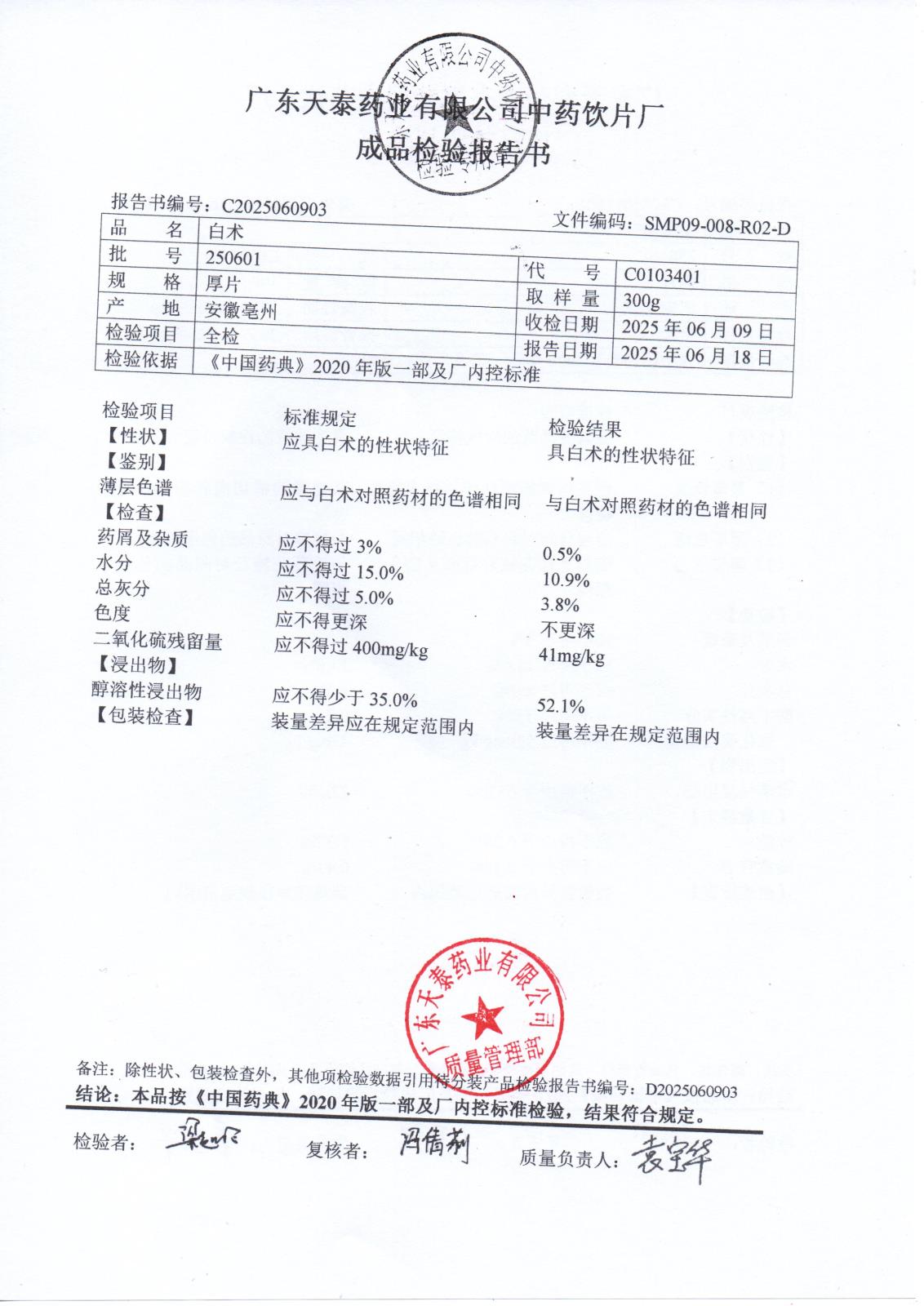药检报告