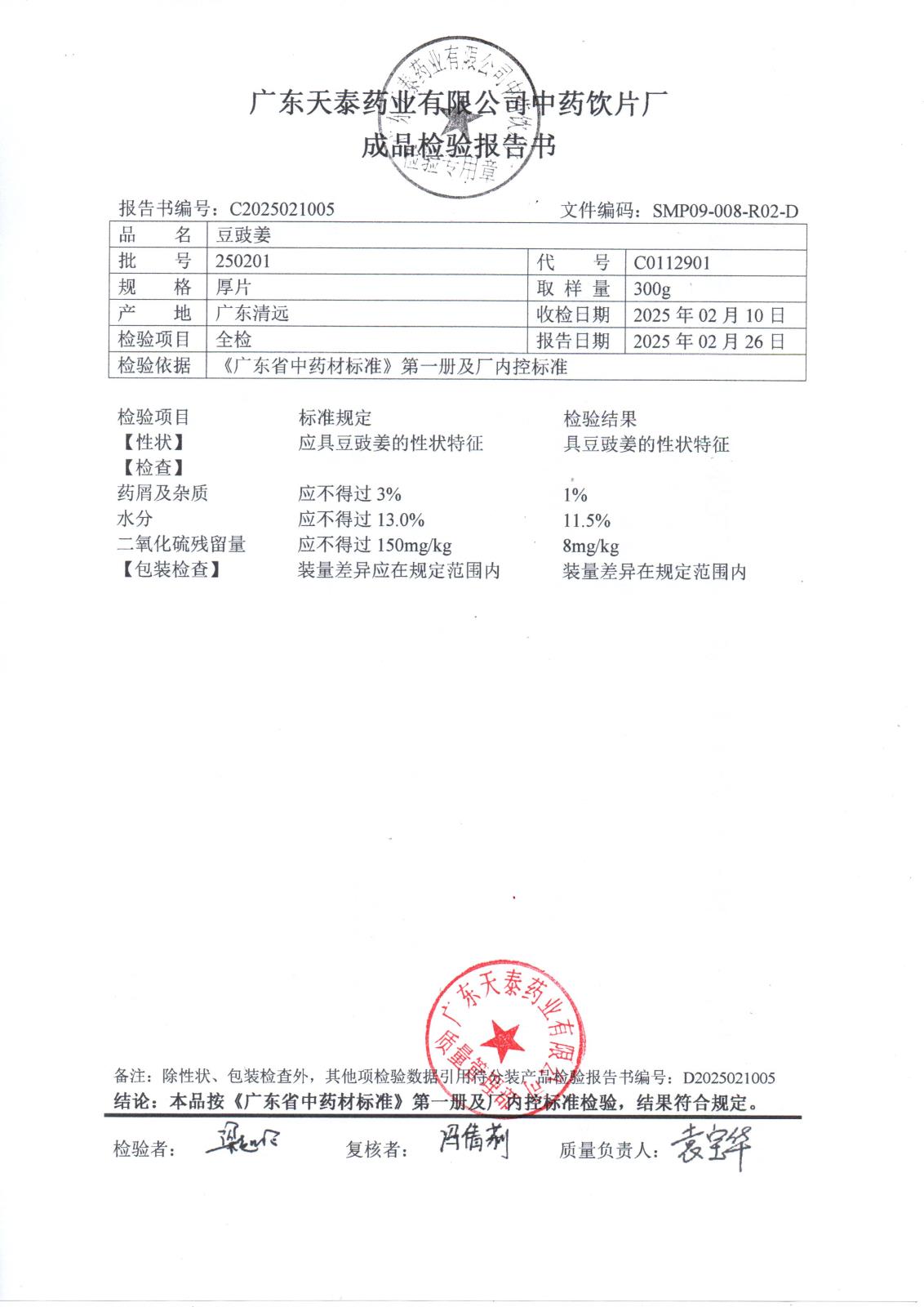 药检报告