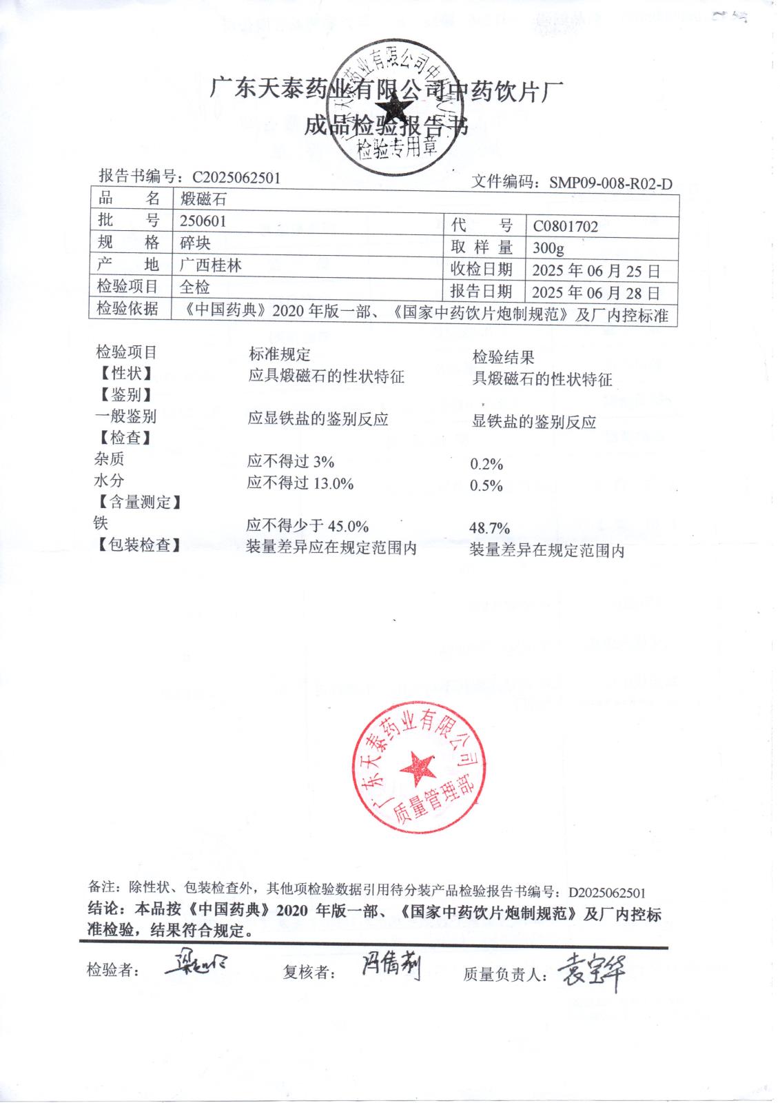 药检报告