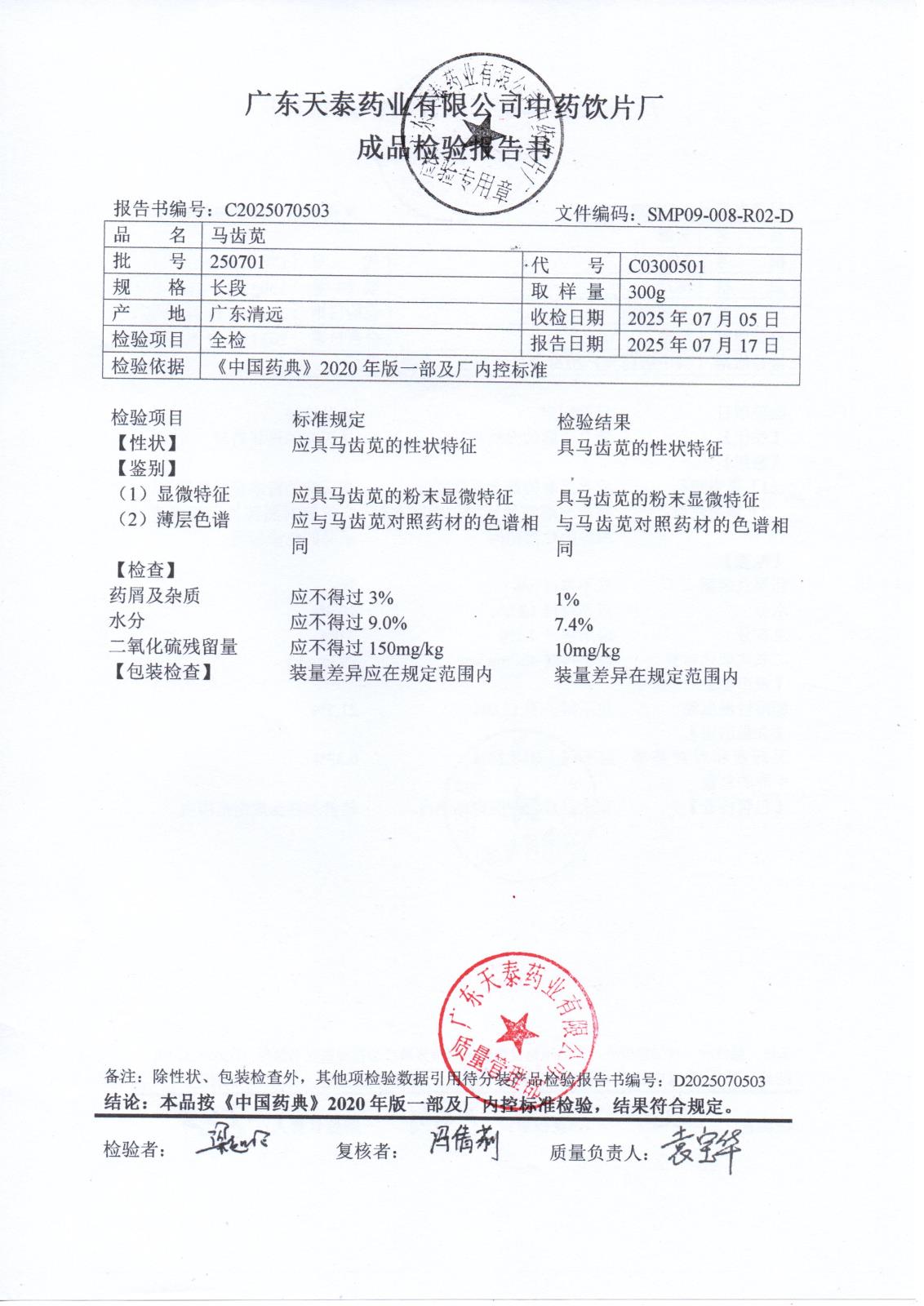 药检报告
