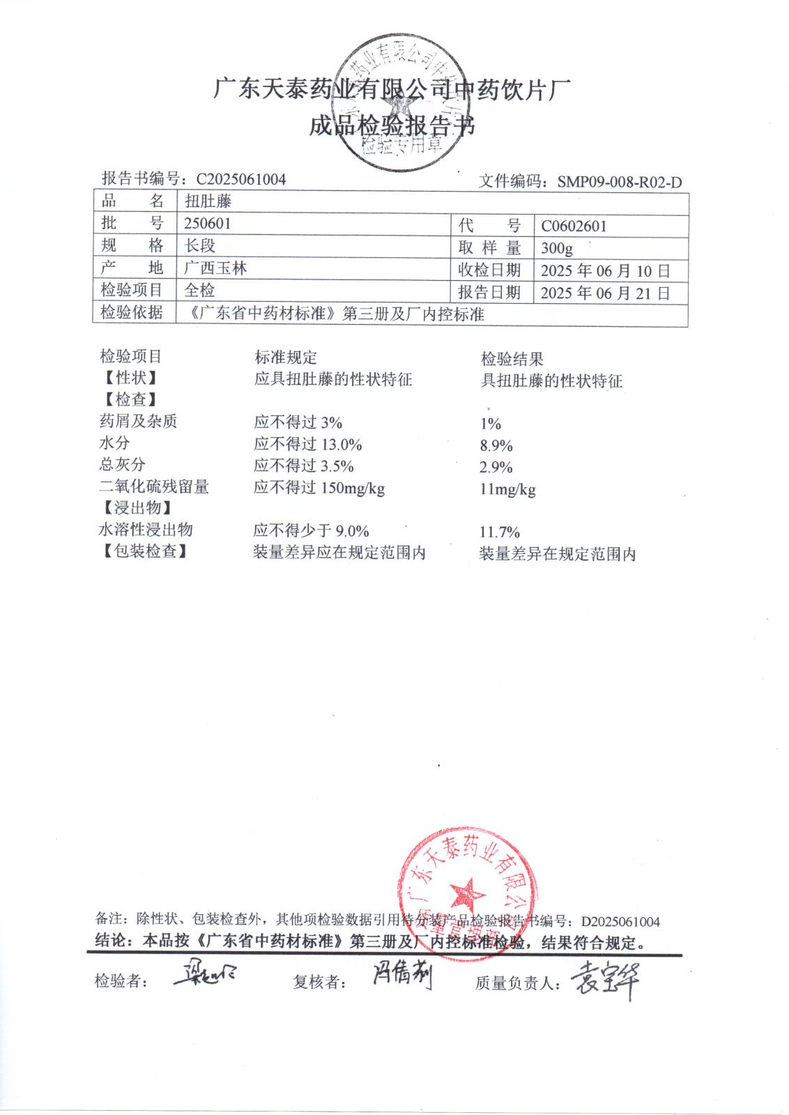 药检报告
