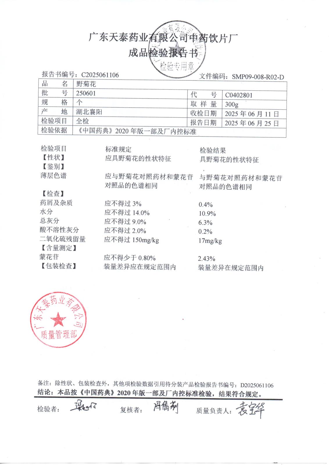 药检报告