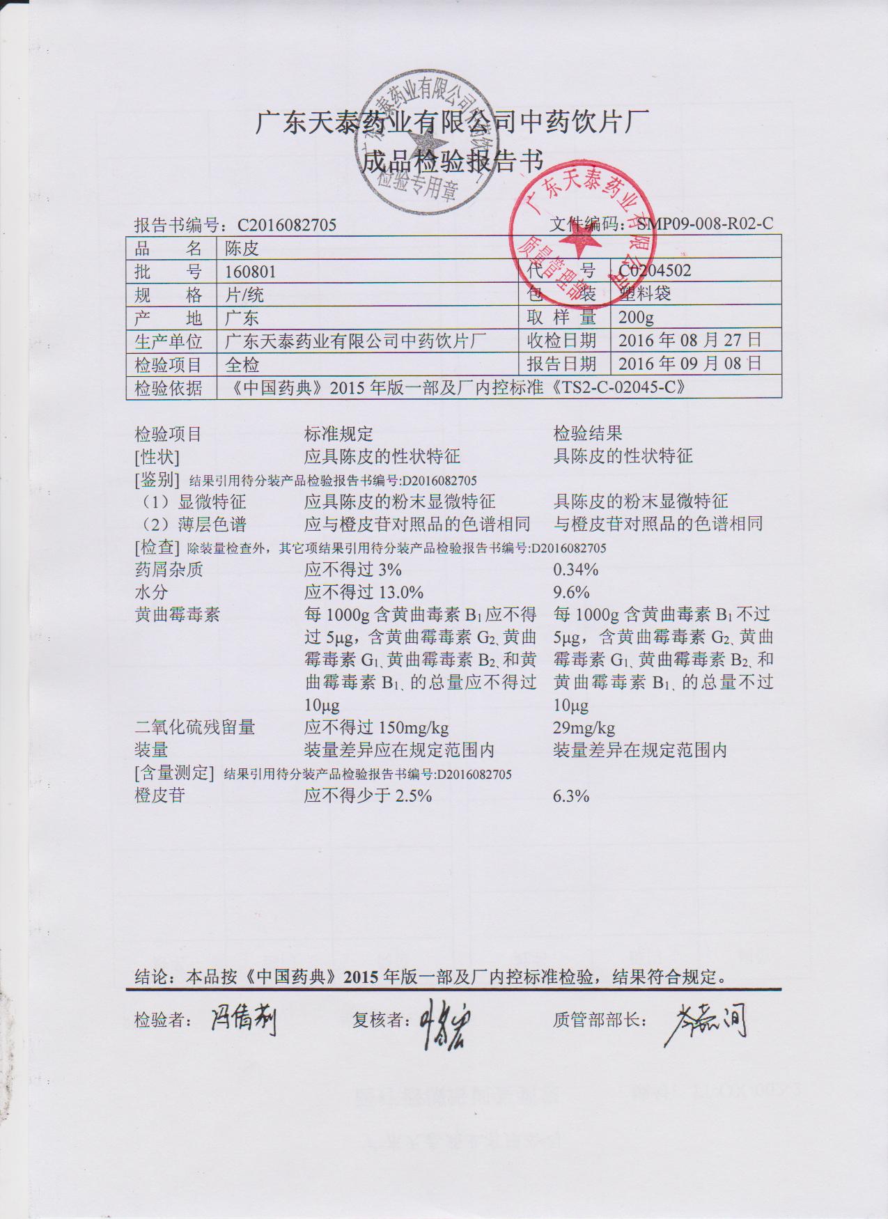 药检报告