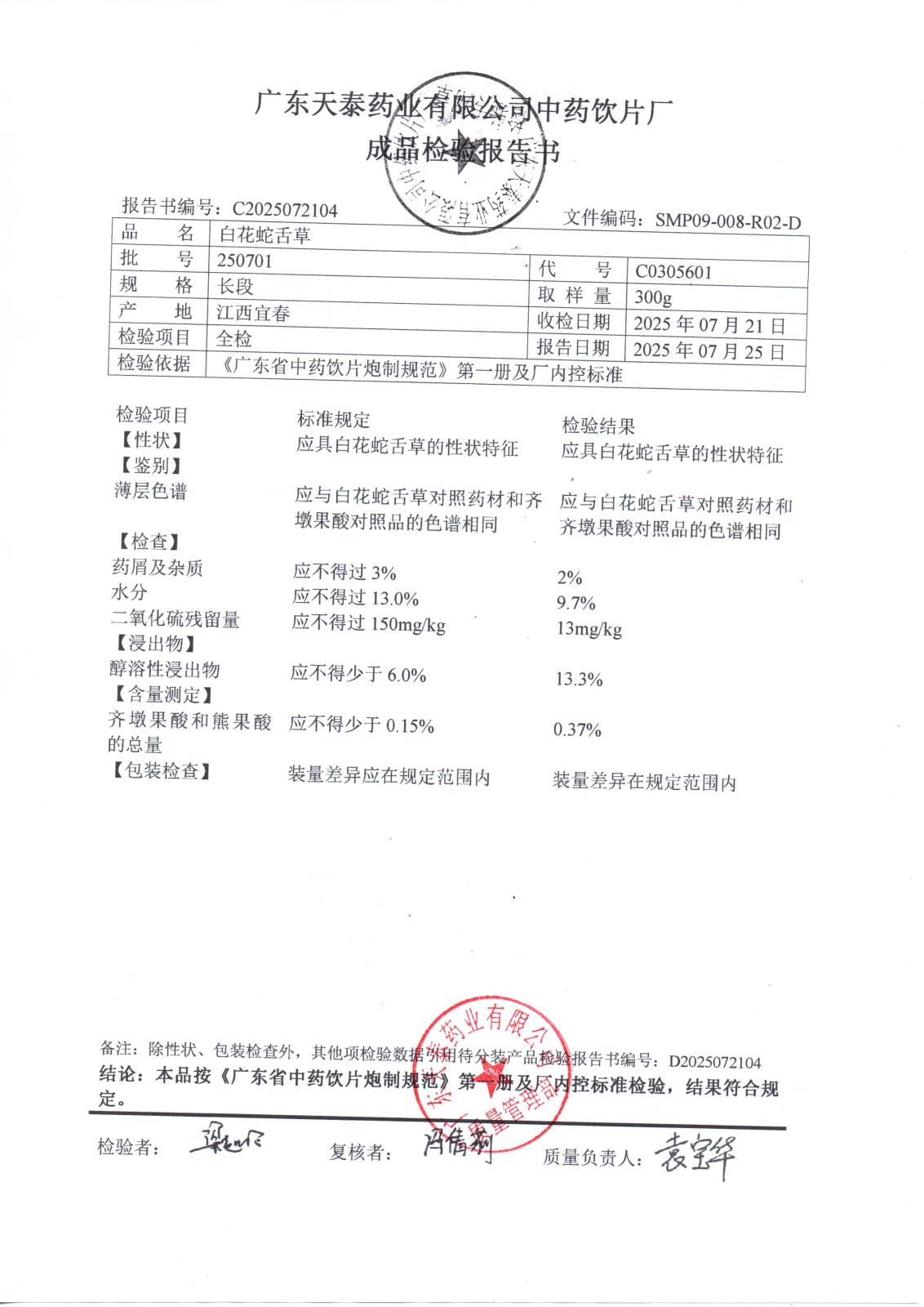 药检报告