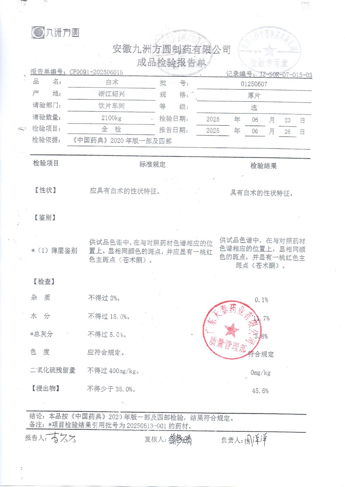 药检报告