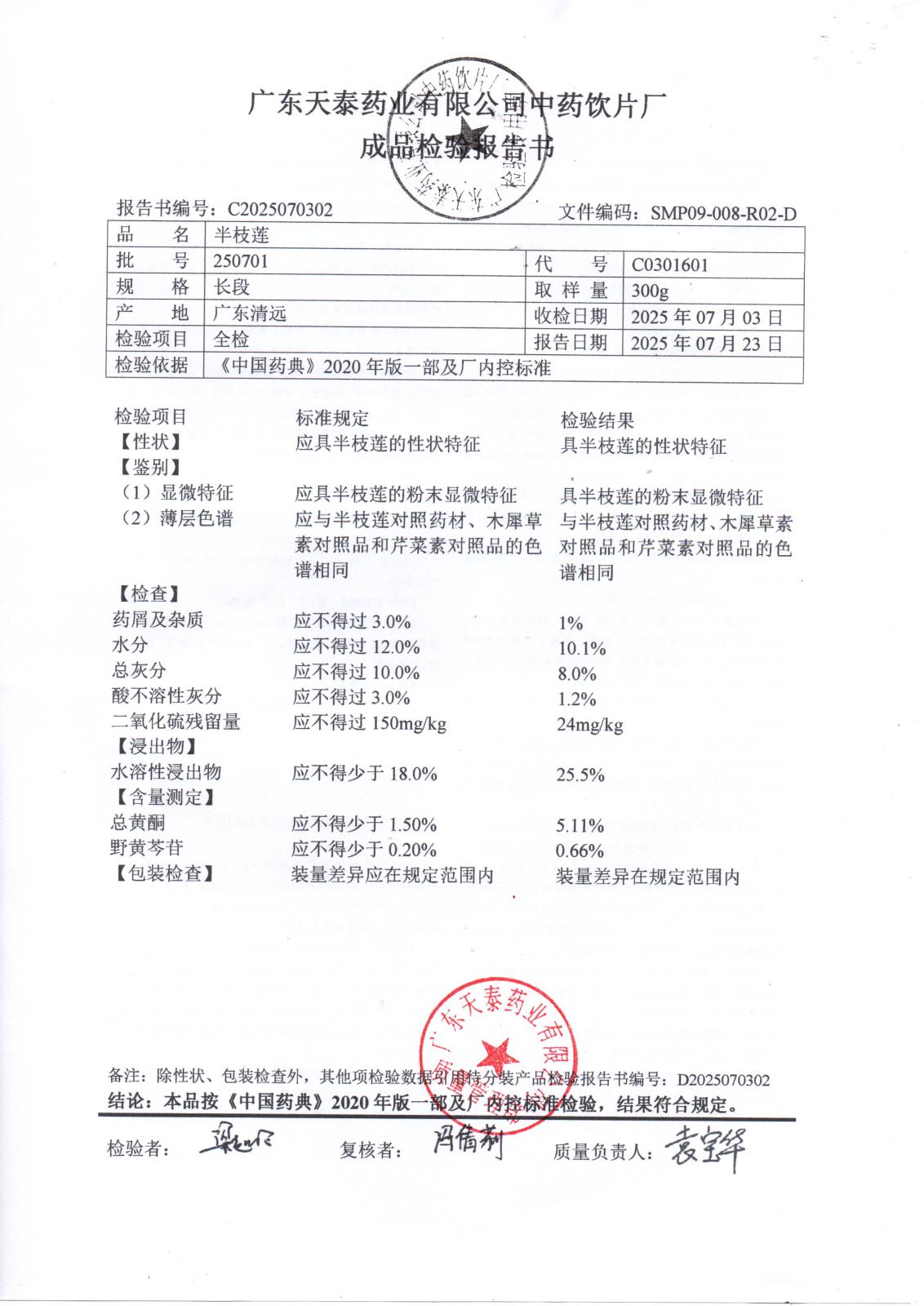 药检报告