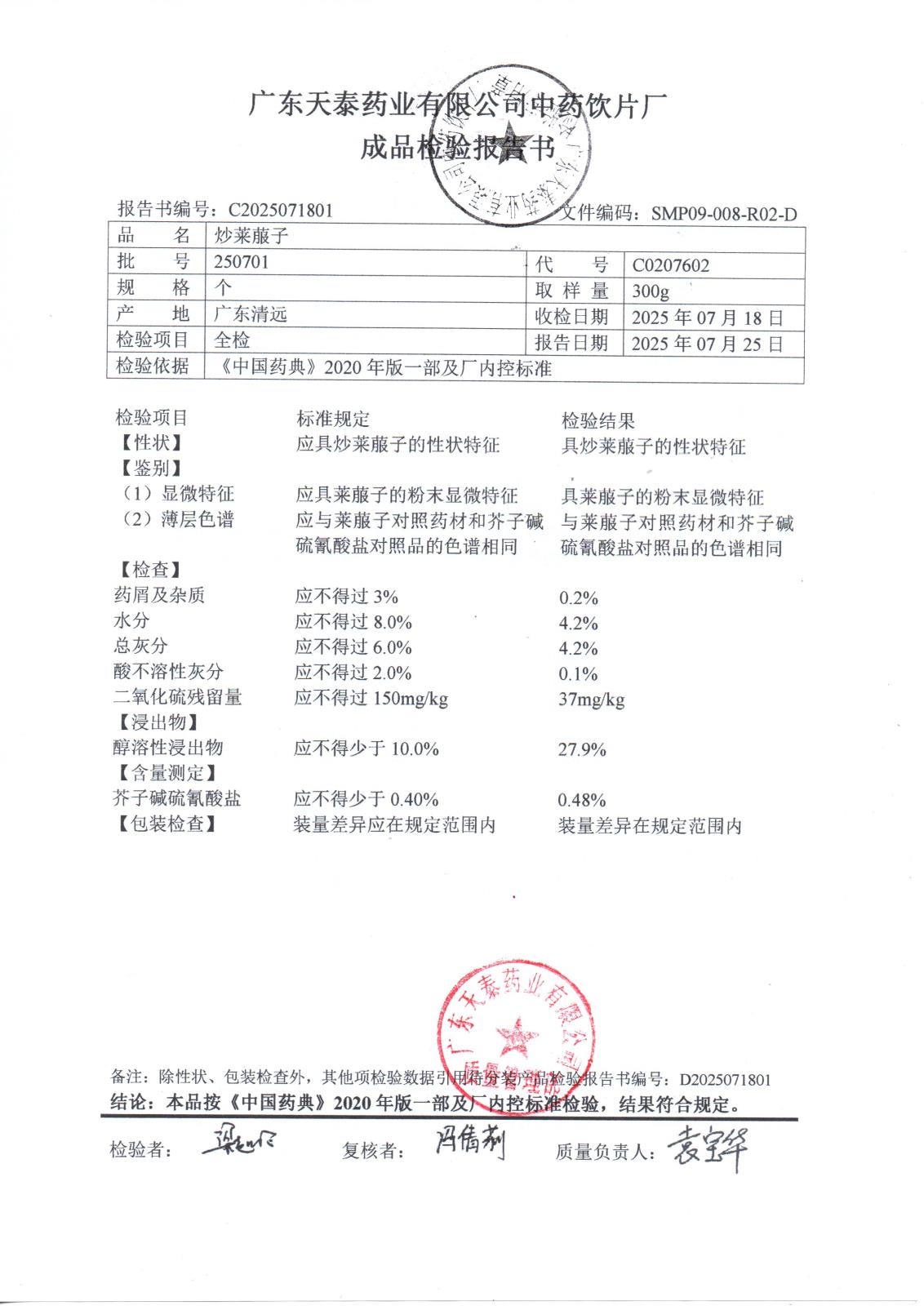 药检报告