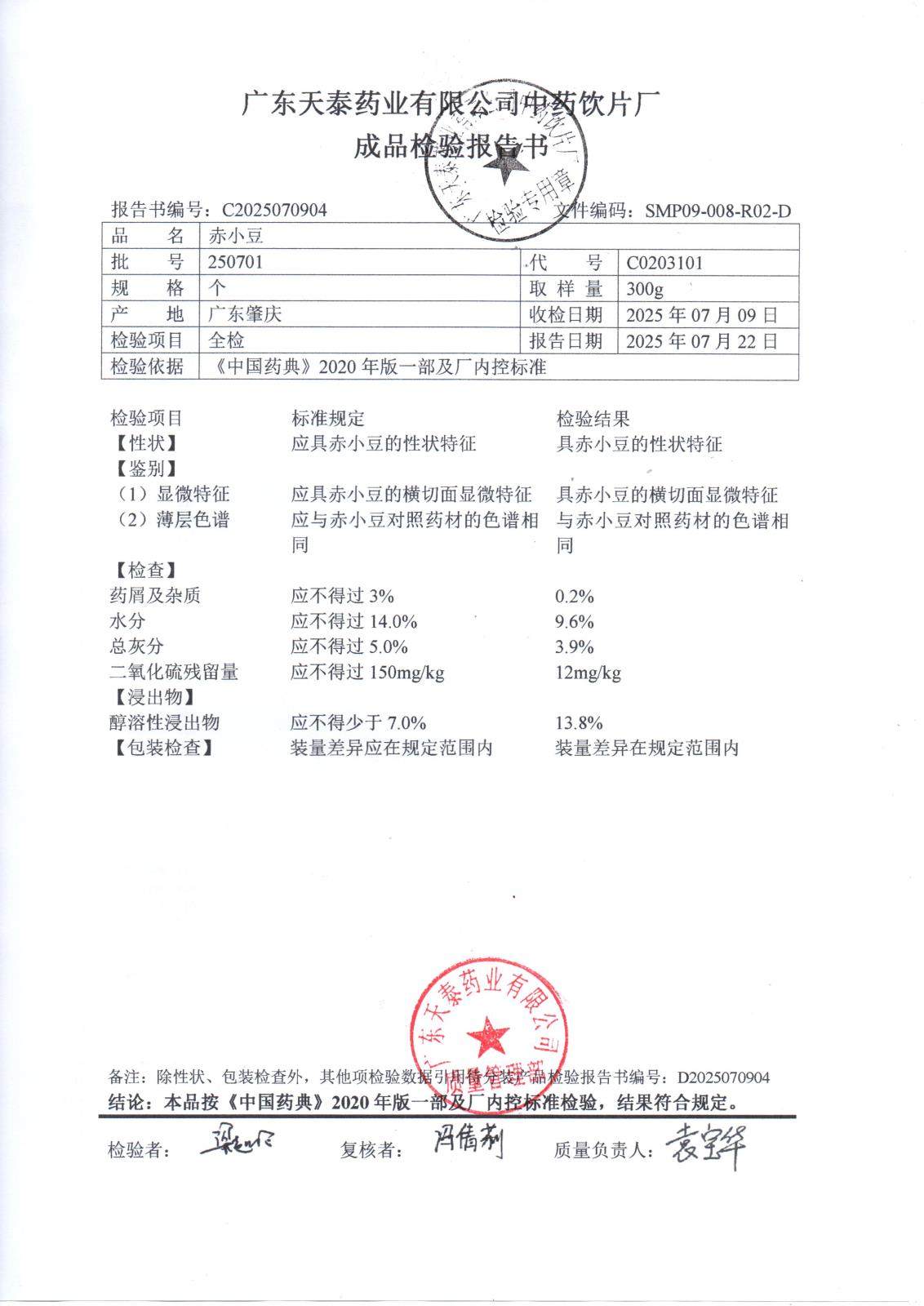 药检报告