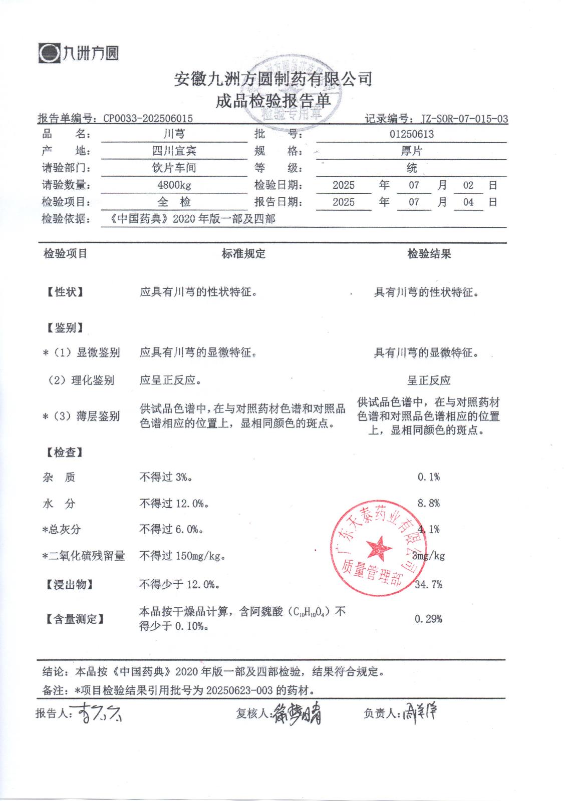 药检报告