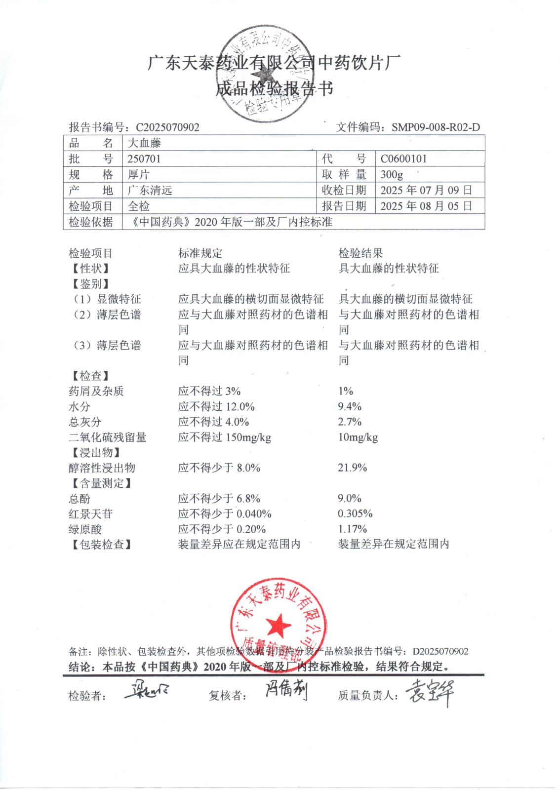 药检报告